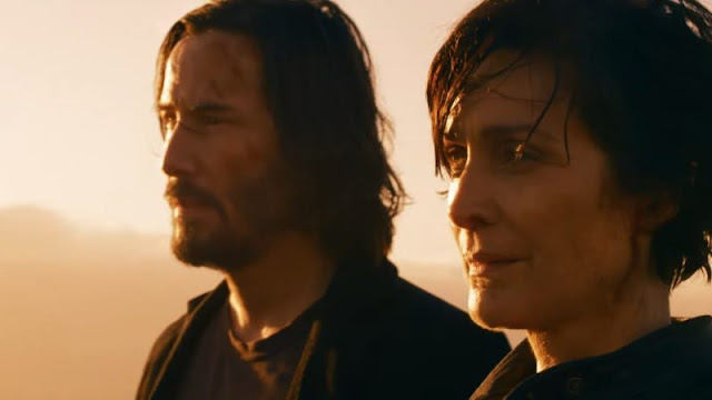 O grande porém é que, nessa ânsia de revisitar o passado, a trama do presente não parece complicada de resolver, e, pra justificar a grande duração do filme, muita coisa aqui acaba inchada e desnecessária (especialmente, no segundo ato, quando Neo reencontra uma determinada personagem). São momentos em que a autoreferência perde bastante da sua graça inicial, e a história se arrasta mais do que deveria.